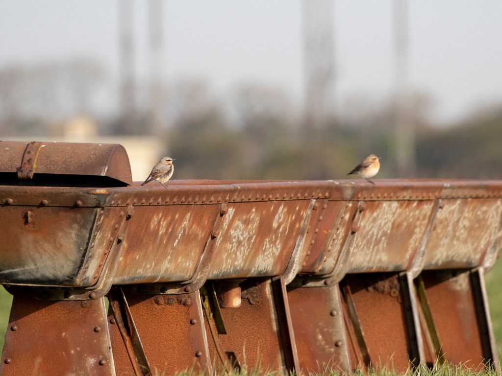 Back home and keen to get up the cliffs, today’s warm southerly wind promised more than it delivered but I was very happy to see my first sub-saharan migrants in the form of 2 Wheatears sat on a feed trough in fields off Reach road.