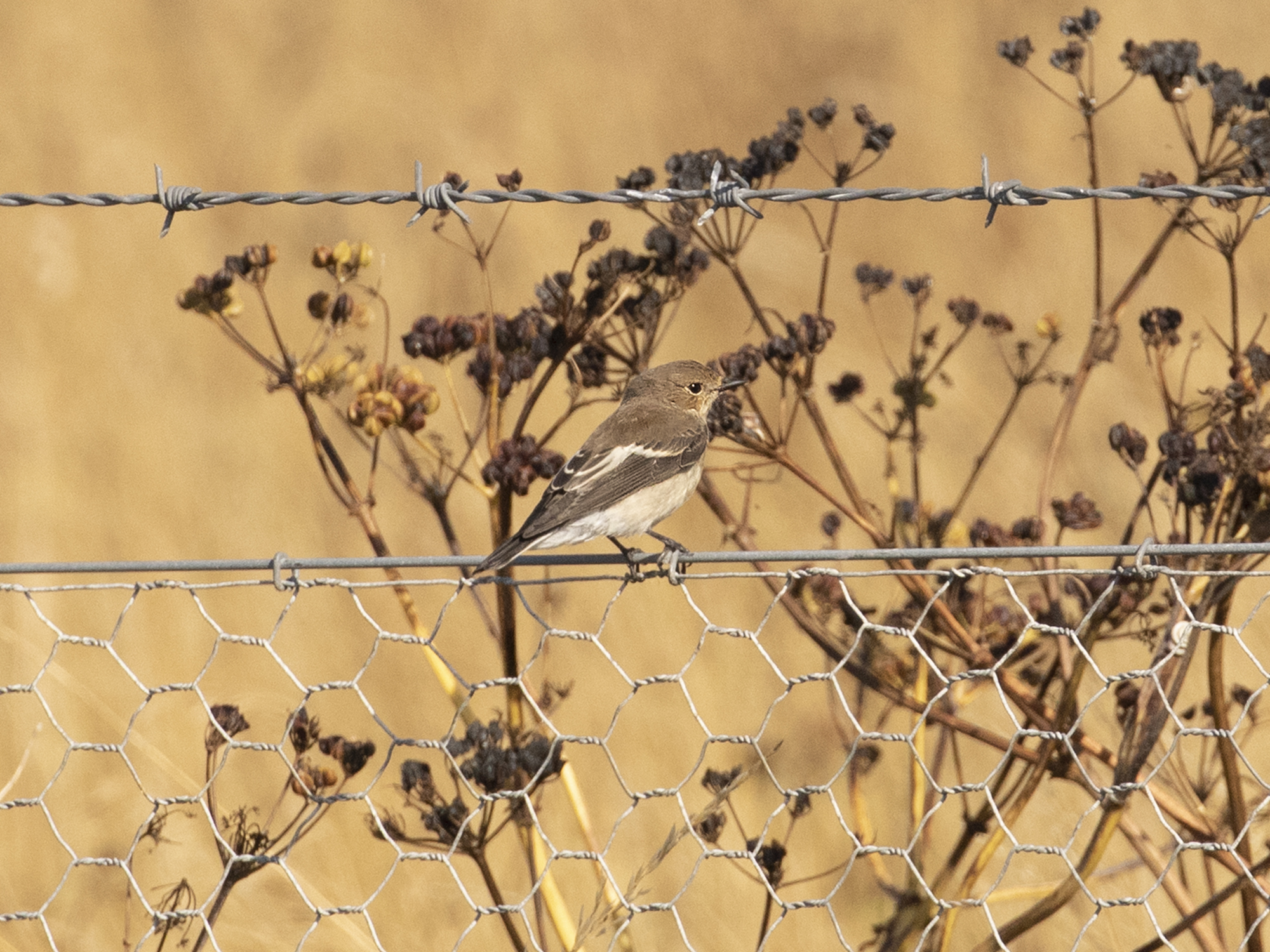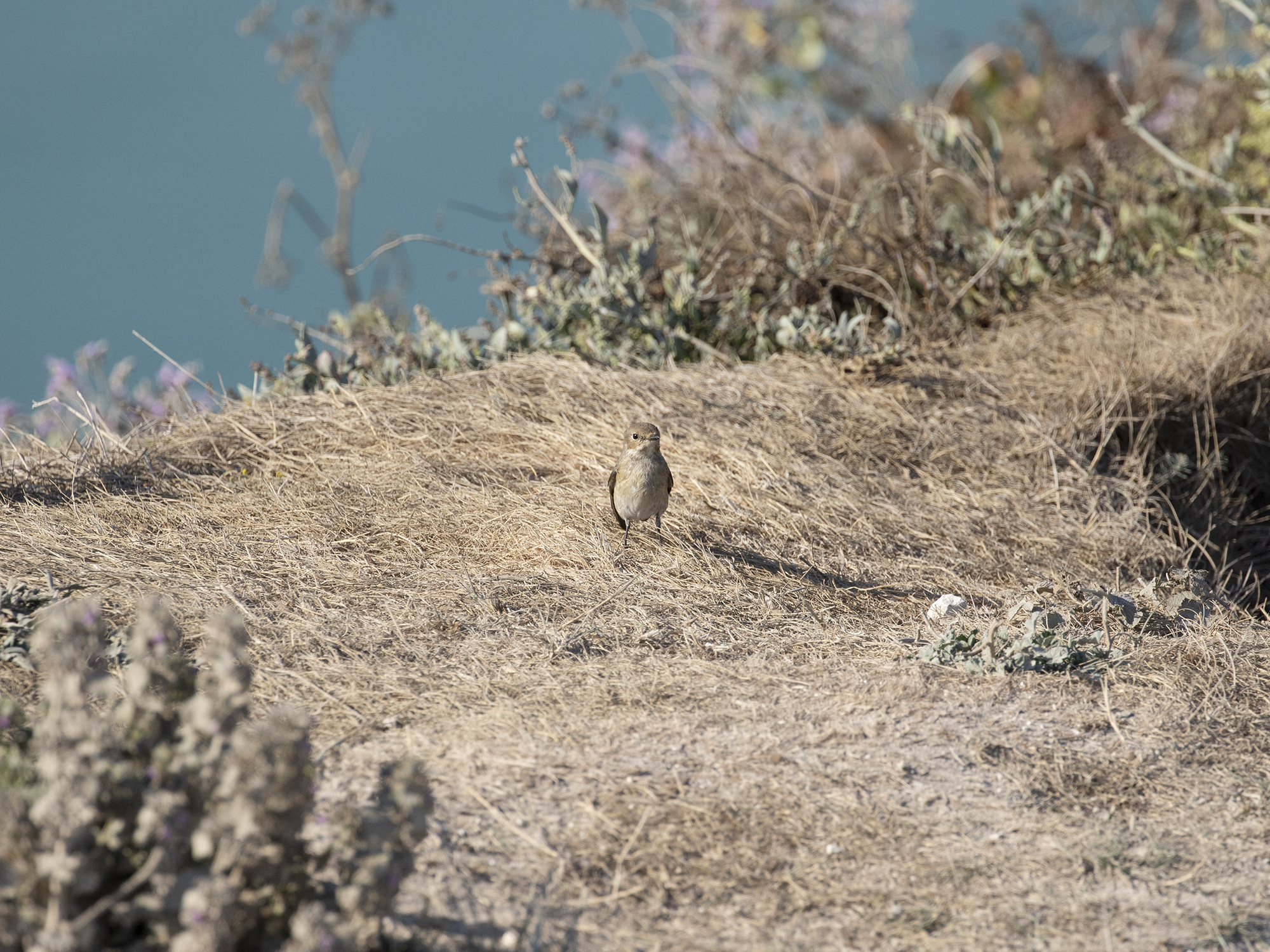 The first PiedFly, originally picked up perched on a cliff top bench, then worked its way along the fence line and fed on the ground at the very highest peak of the cliffs before hopping over the edge and heading towards Langdon. Very enjoyable!