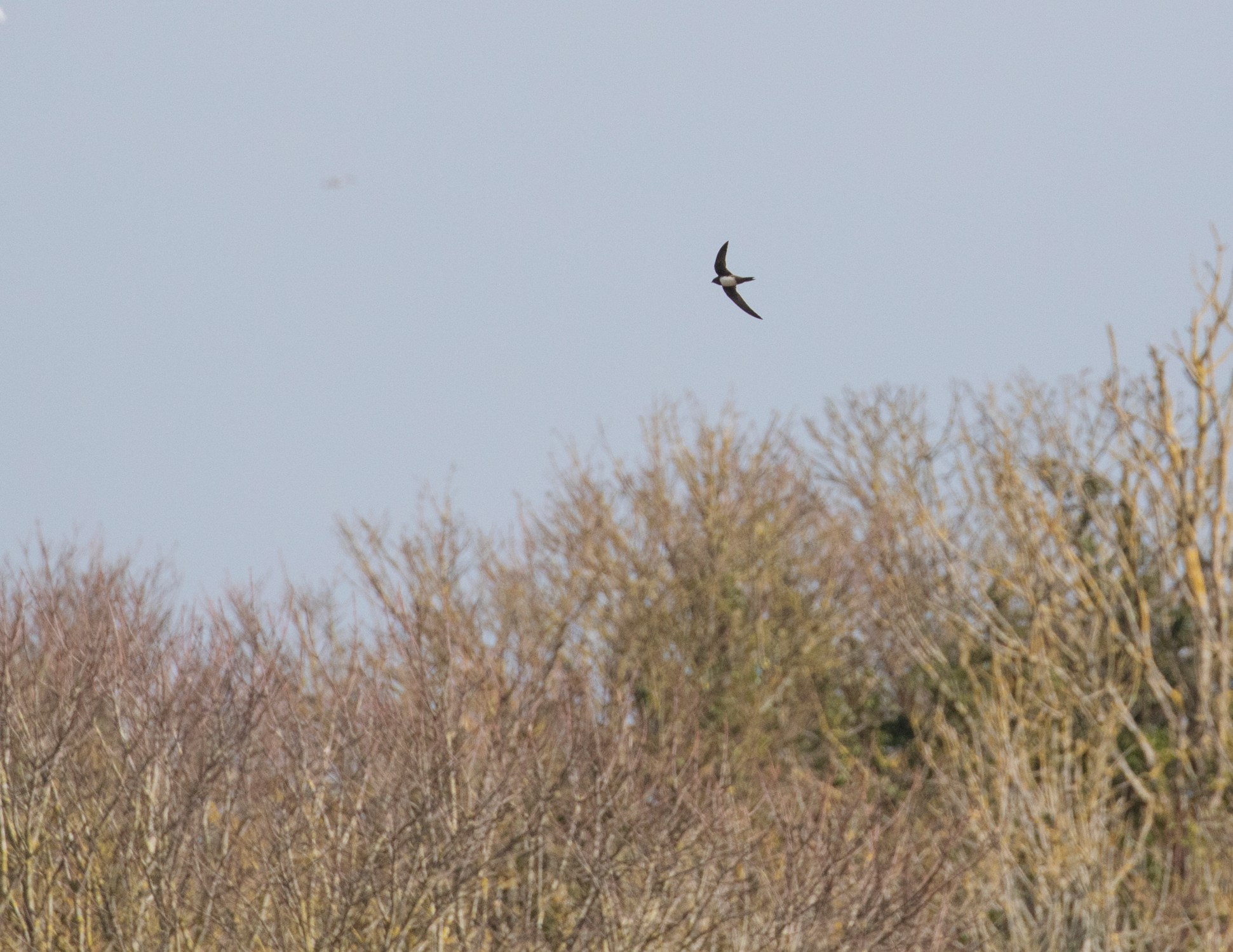 Today was a blessing though as I received news of an Alpine Swift seen at the neighbouring headland-Bockhill, Luckily I was well situated and climbed up the old Gun Emplacement assuming I’d probably missed it zip through. 25 Minutes later however it appeared over the trees at the top of the valley and fed along a line of leafless sycamores giving great views at times.