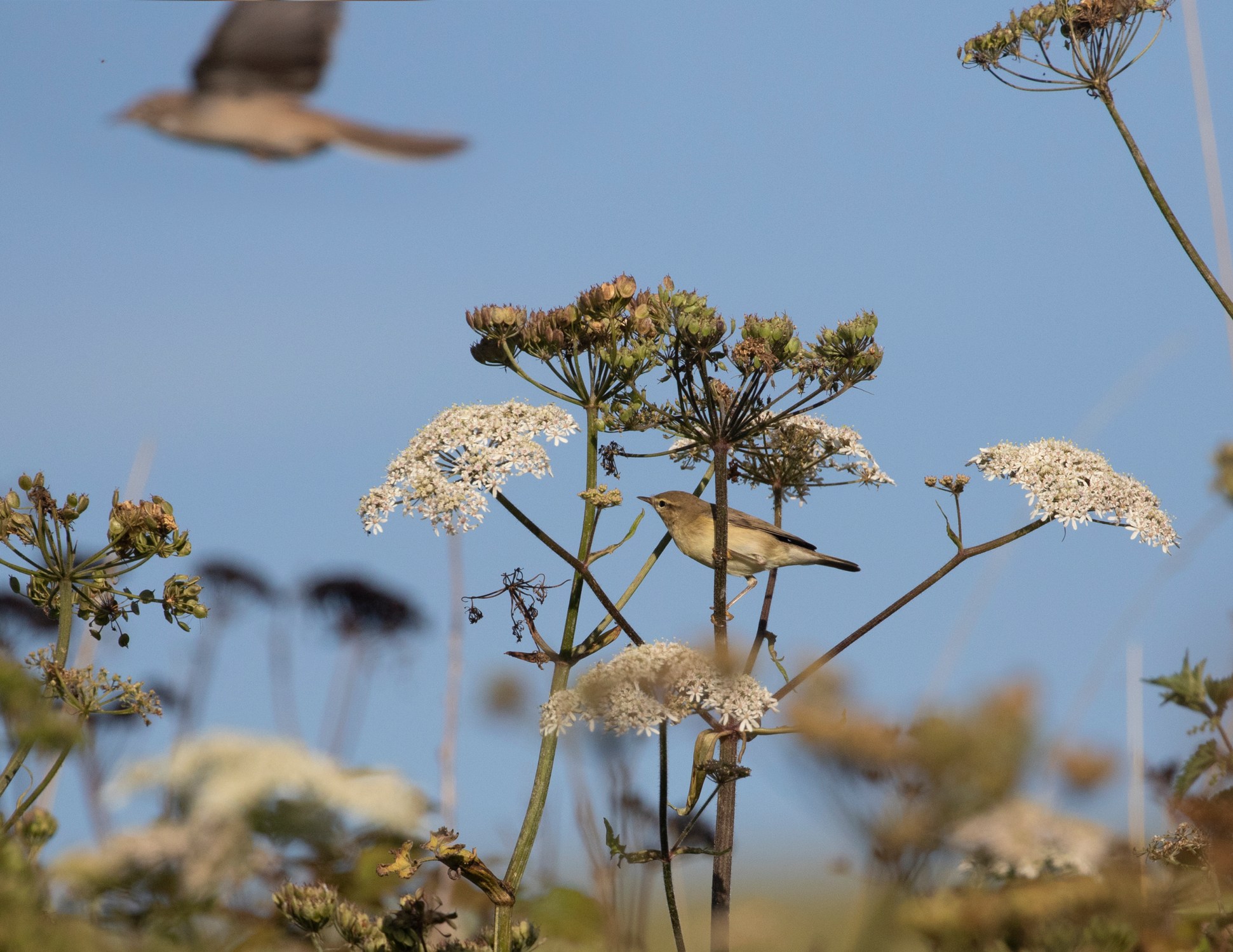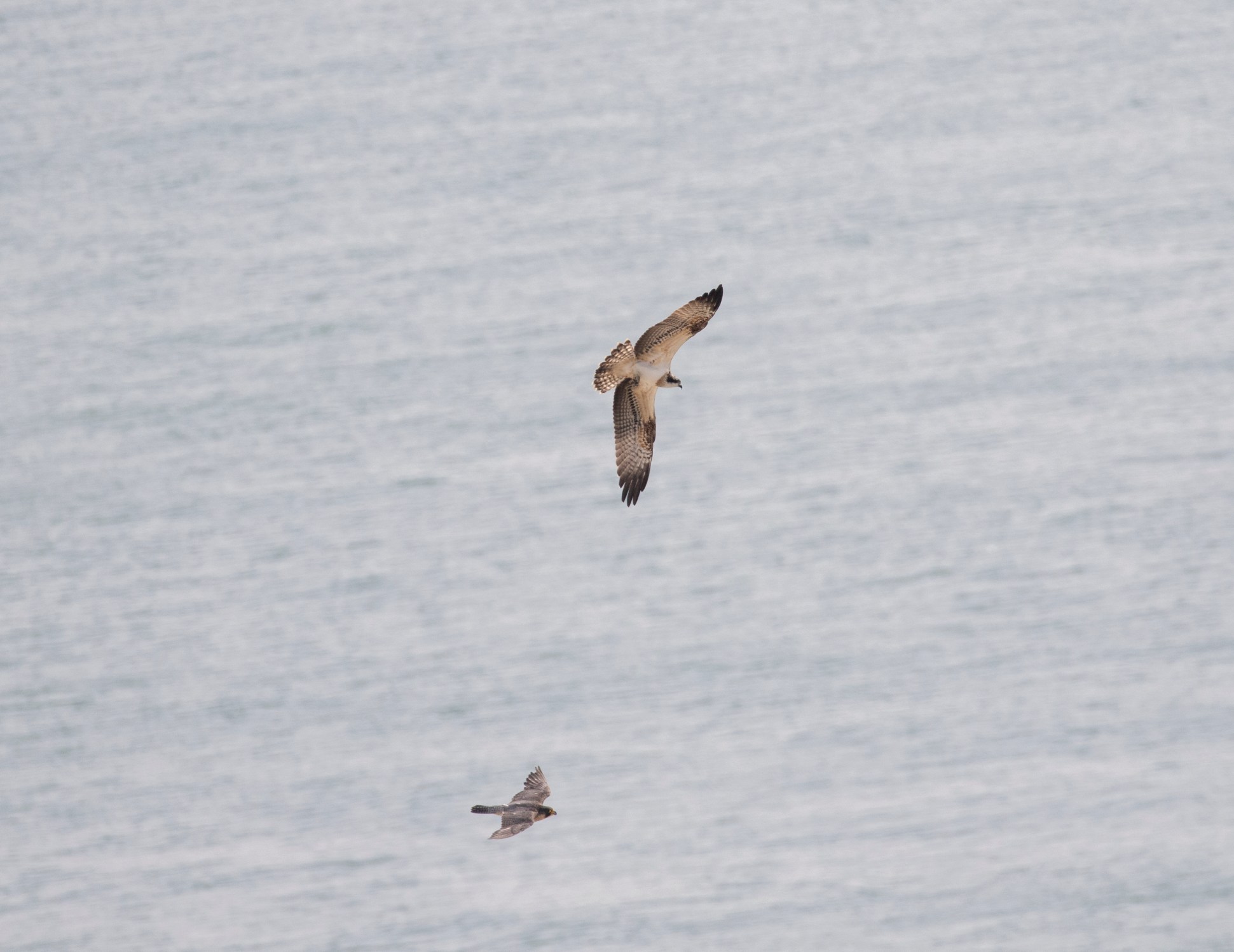 The highlight of the morning was an Osprey that cleared the large gull flock under the cliffs at the light house before being chased west by a resident Peregrine. A marsh Harrier flew in off the sea just after. 3 Whinchat on the top fields. A nice visit from Young Dante y’day was highlighted with a Nightingale on the farm but not much else.