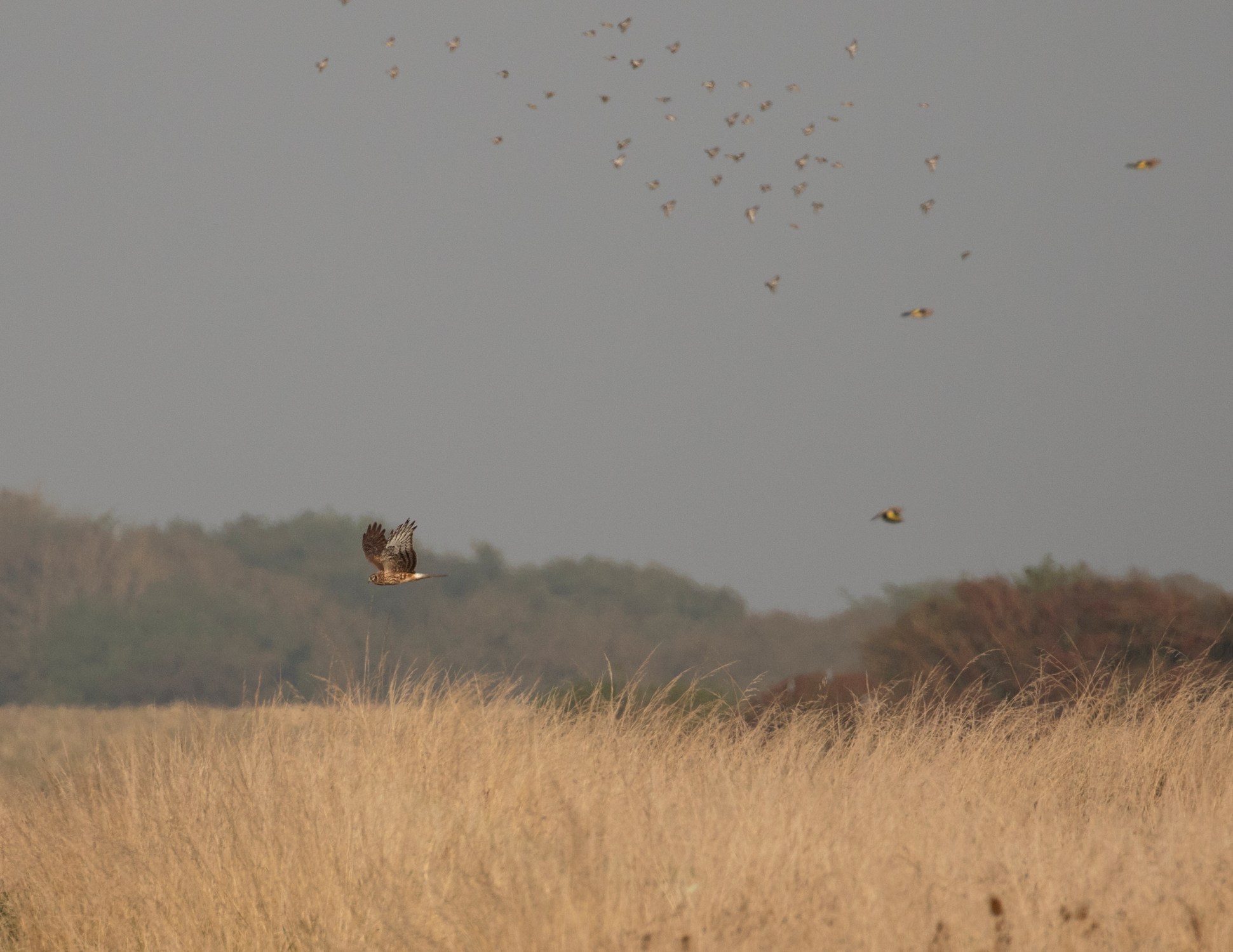 A real bit of excitement in the form of a juvenile Red–footed Falcon, initially over the edge of Top wood and the adjacent field, the bird remained high up but was seen well before being lost to view. I picked it up again flying towards wanstone farm so a mad ‘cross country dash’, ensued straight across the fennel field after which and I watched it hunting over towards st Margarets. 25 minutes later I picked it up again high over the farm flying west towards Swingate but despite searching for another 2.5 hours there was no sign.