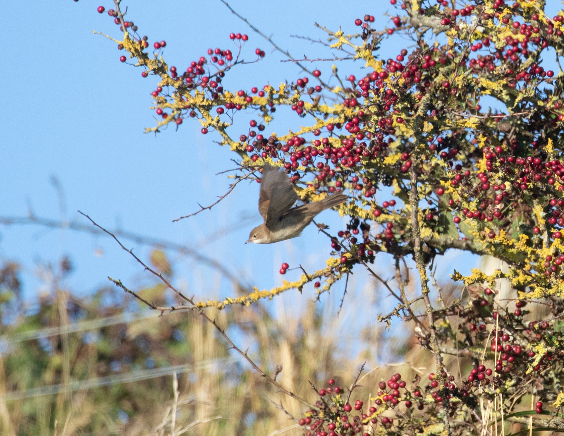Despite the dates and the daily coverage there’s still not much to write home about, lacking the numbers of thrushes etc though today was ‘birdy’ : 4 Ring Ouzel, 2 Mistle Thrush, 3 Redwing, 11 Brambling, 50 Chaffinch, single Crossbill west, 20 Reed Bunting ( Flying over west in 1’s + 2’s) approx – 110 Redpoll, 250 Siskin, 500 Goldfinch, c200 Skylark on site and in off, 140 Starling in off, Common Buzzard in off, 70 Swallow 18 House Martin, 3 Firecrest, 2 Blackcap, 5 Chiff and 6 Golden Plover flew west over the top fields. Upon returning back home I found a female Common Redstart in my garden, it even landed on the feeder and was around in the back gardens all afternoon, pretty late record!