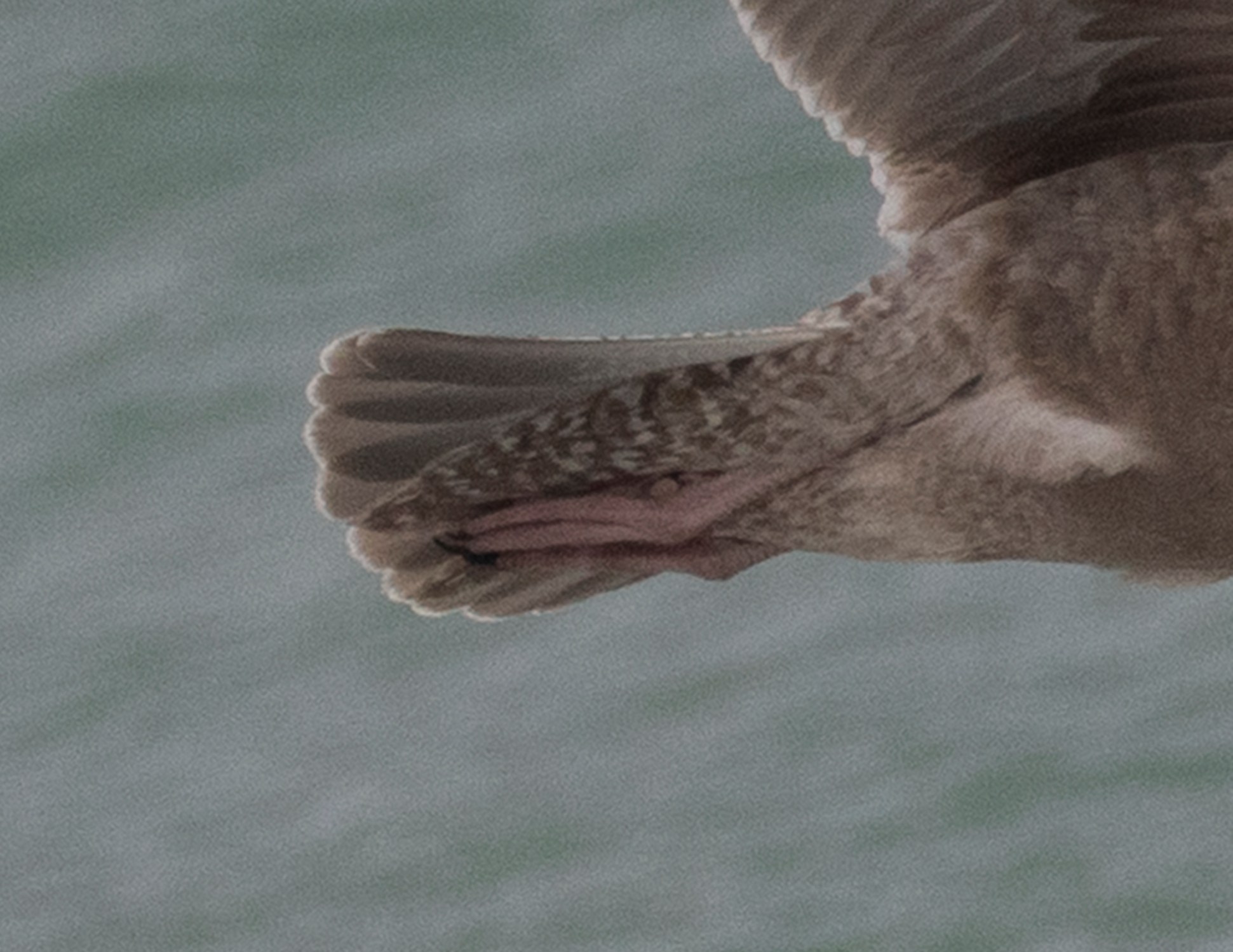 The combination of all dark brown wing, pure white underparts, white head and bright pink bill base made me jump as soon as I picked this bird up. I see plenty of contrasty canus types and some with very clean head and flanks but never in combination with the dark wing like this – dark winged birds tend to be very streaked and dark elsewhere.