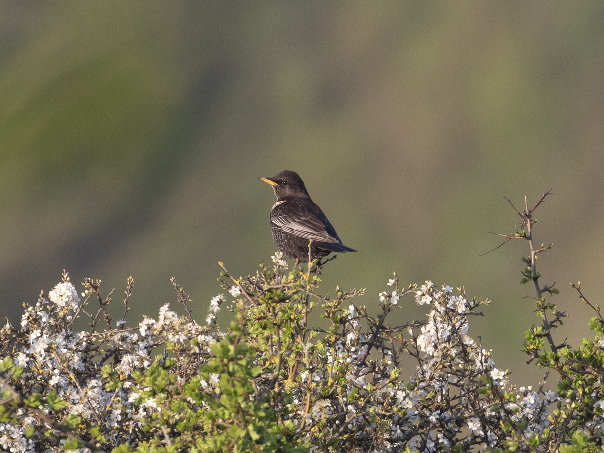 Another day of strong SSW winds with a few notable arrivals but nothing spectacular in terms of numbers. A BlackRedstart was singing from the end of my road at first light, A RingOuzel on Fox hill down was the first bird I put my bins on.