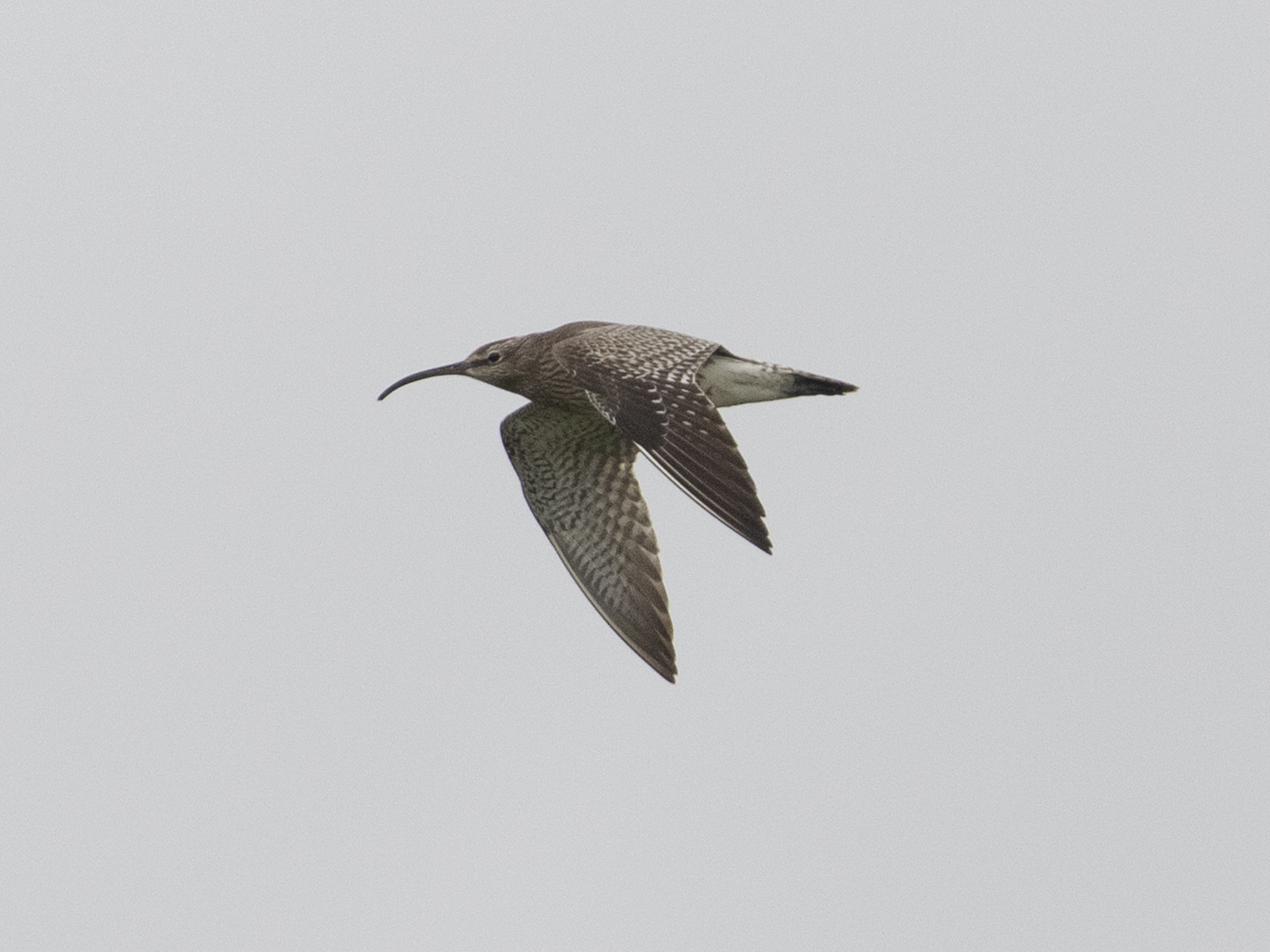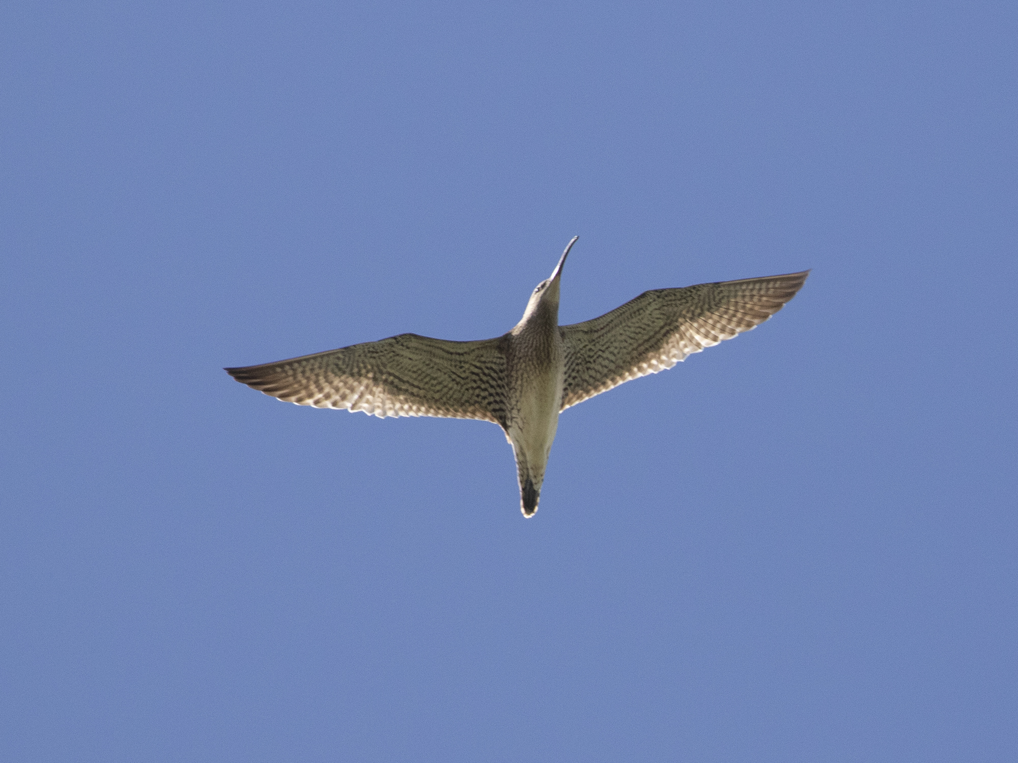 A Whimbrel flew North, viewed from Lighthouse down where a Greenshank was heard calling unseen.