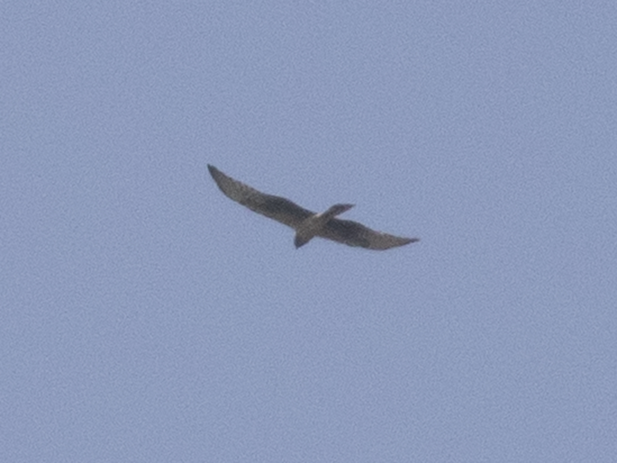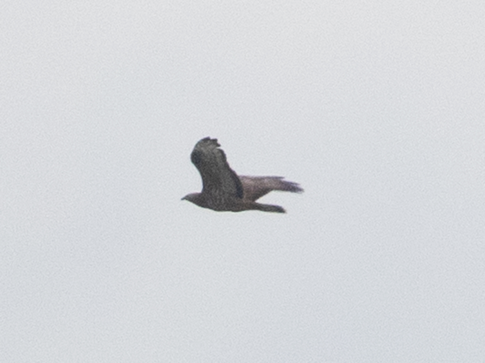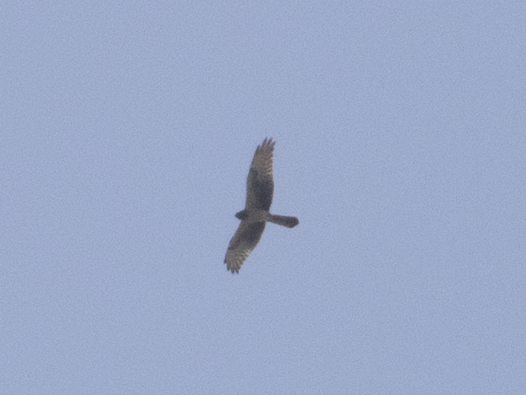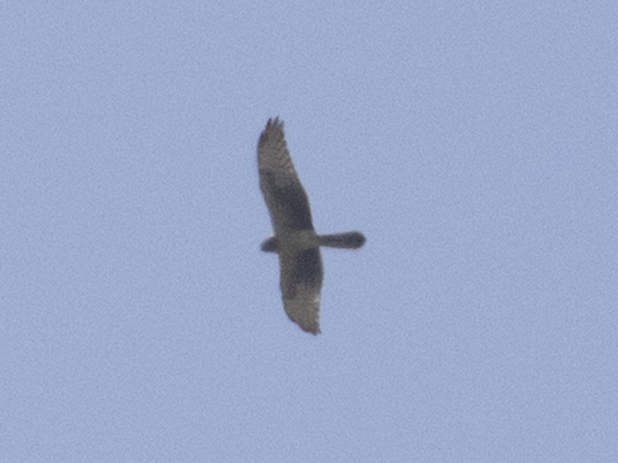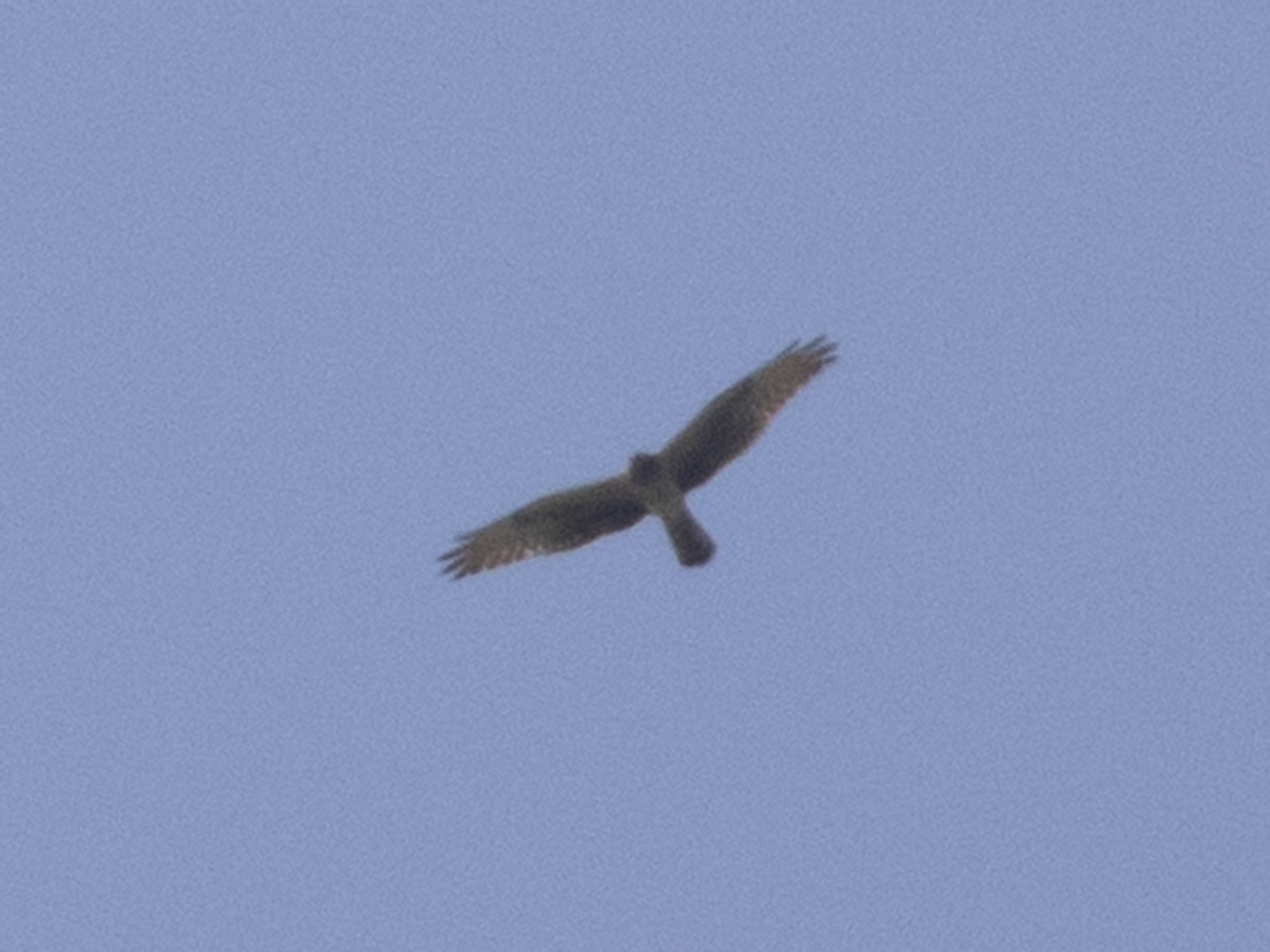 The bird seemed to lack the diffuse dark primary tips and dark trailing edge of Montys, but could that be the poor back lit photos? An older (3cy) female Pallid Harrier could show a head pattern like this with no apparent boa, I’m told the commas present in the outer greater coverts are suggestive of Pallid, as are the bulging secondaries, but the very long winged look to a couple of shots gives a more Montague’s impression.