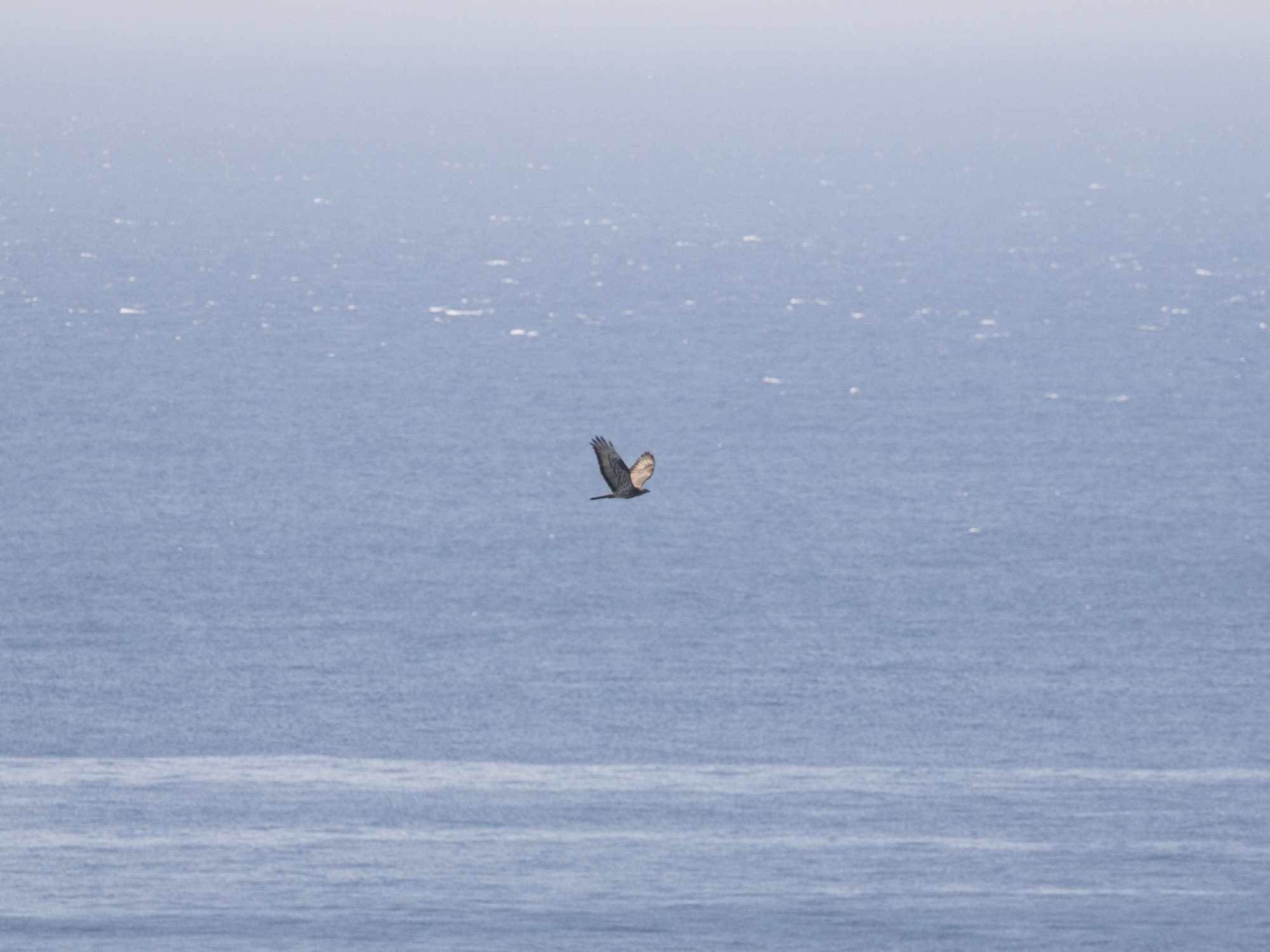 Whilst scanning out to sea just before 09.30 I picked up the obvious outline of a HoneyBuzzard powering in towards the cliffs. It’s trajectory, unfortunately took it up North side of the bay and over the monument but it was a good enough view to see it was male shaped and grey above. The bird circled over the village briefly and continued North.