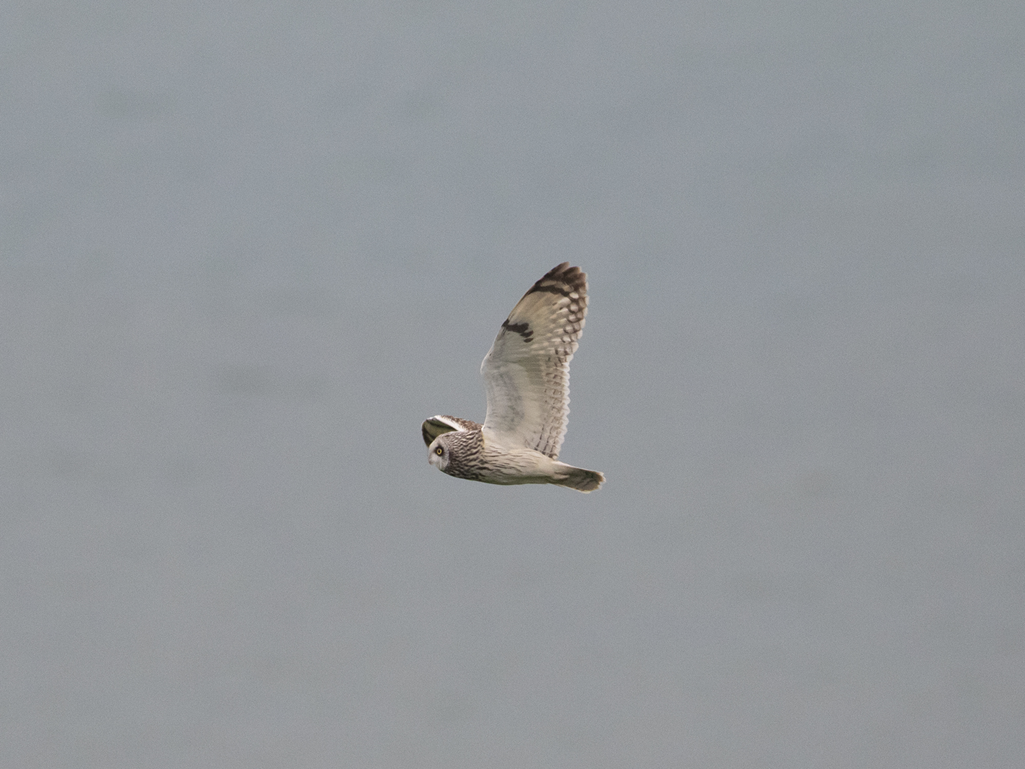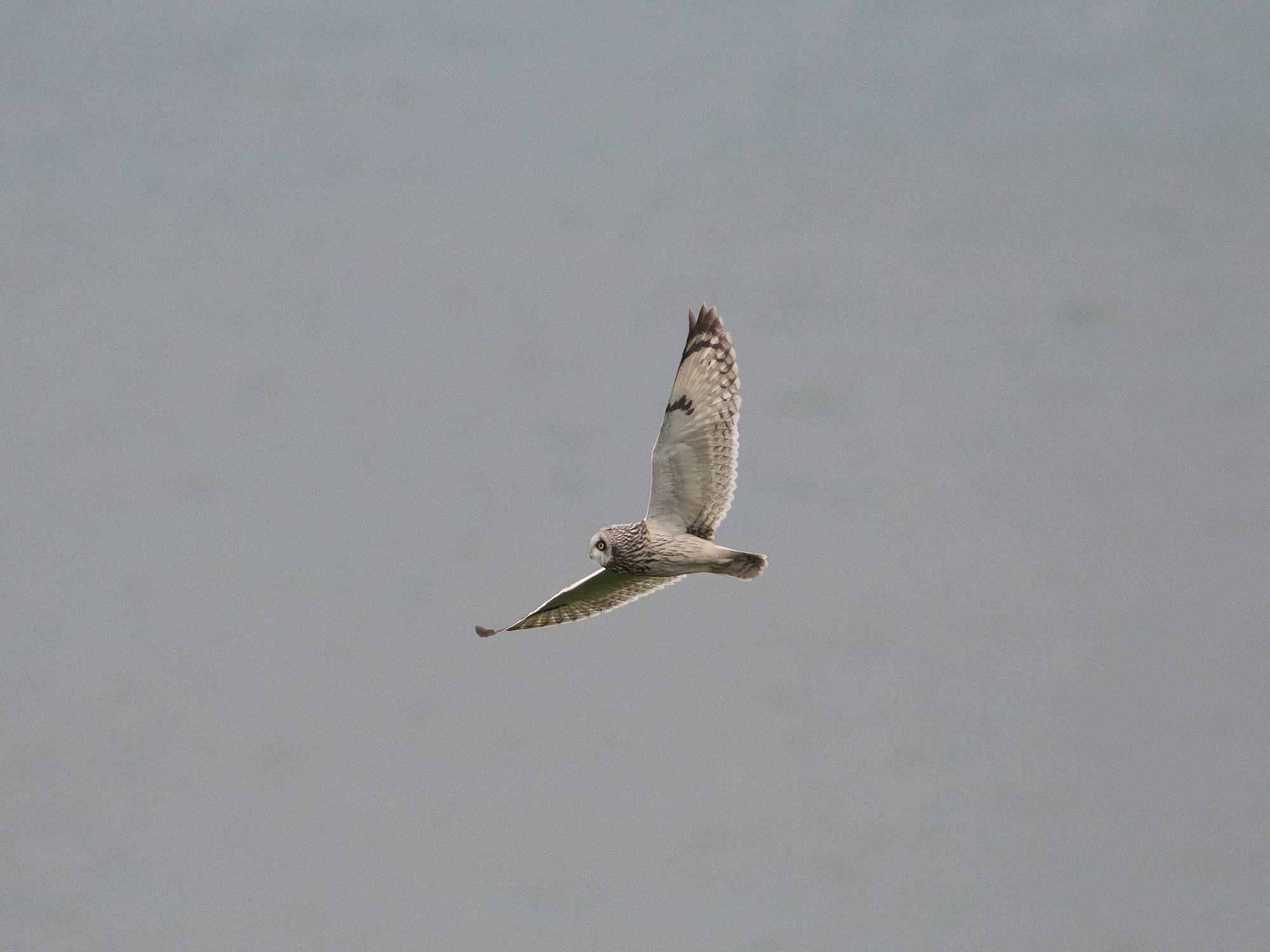 Luckily the man noticed what had happened and went the other way allowing the Owl to hide in the cover again, only to get disturbed 5 mintues later by Jackdaws. It then proceeded to circuit Fan bay giving fantastic views before heading inland over towards the farm.