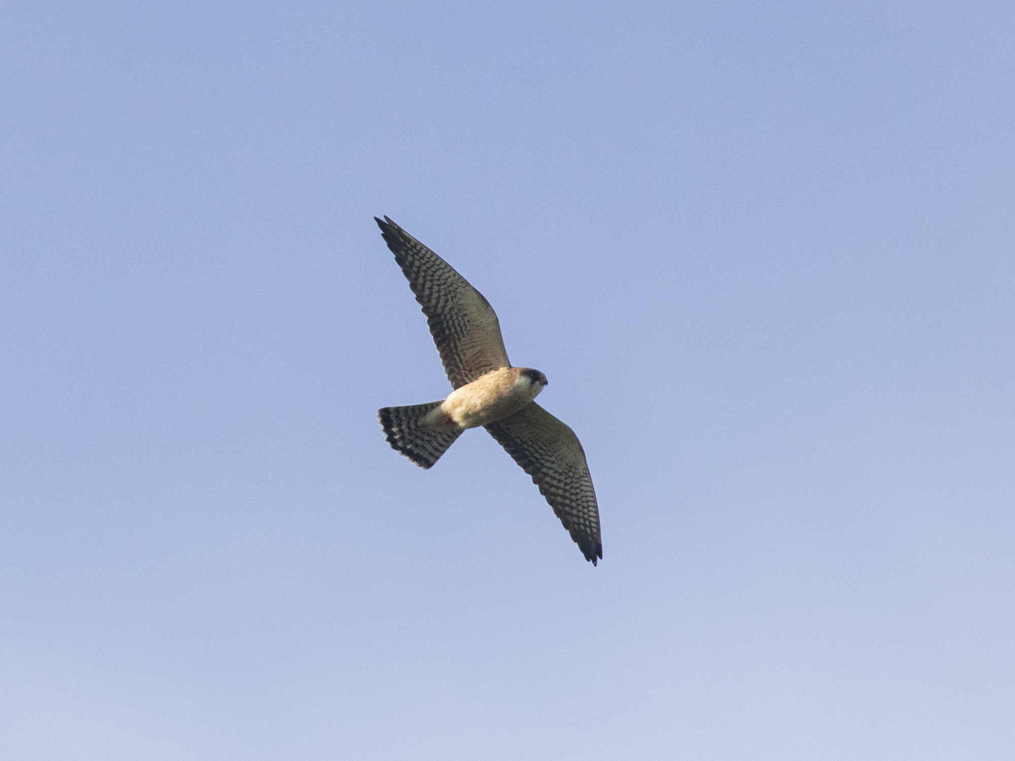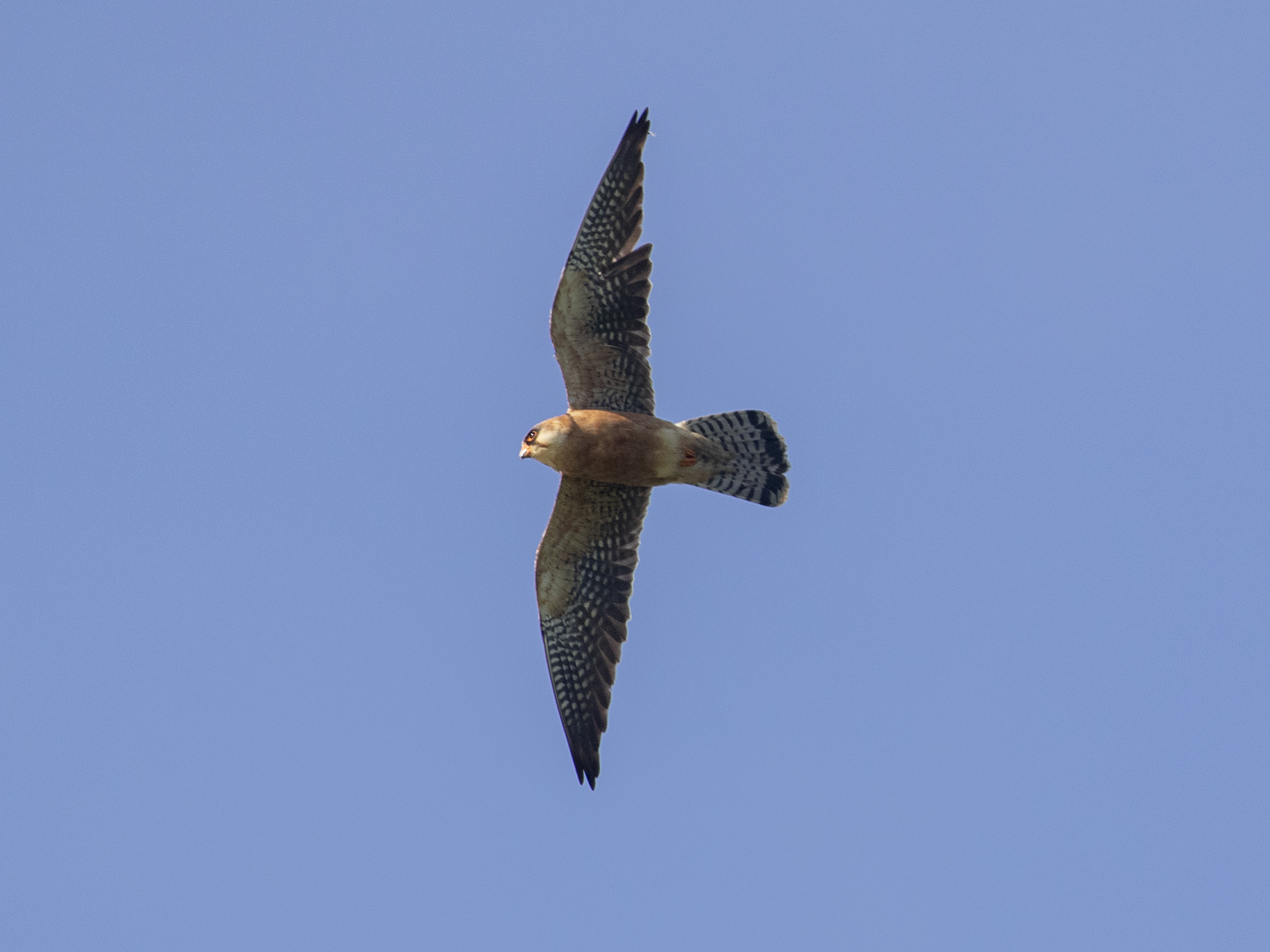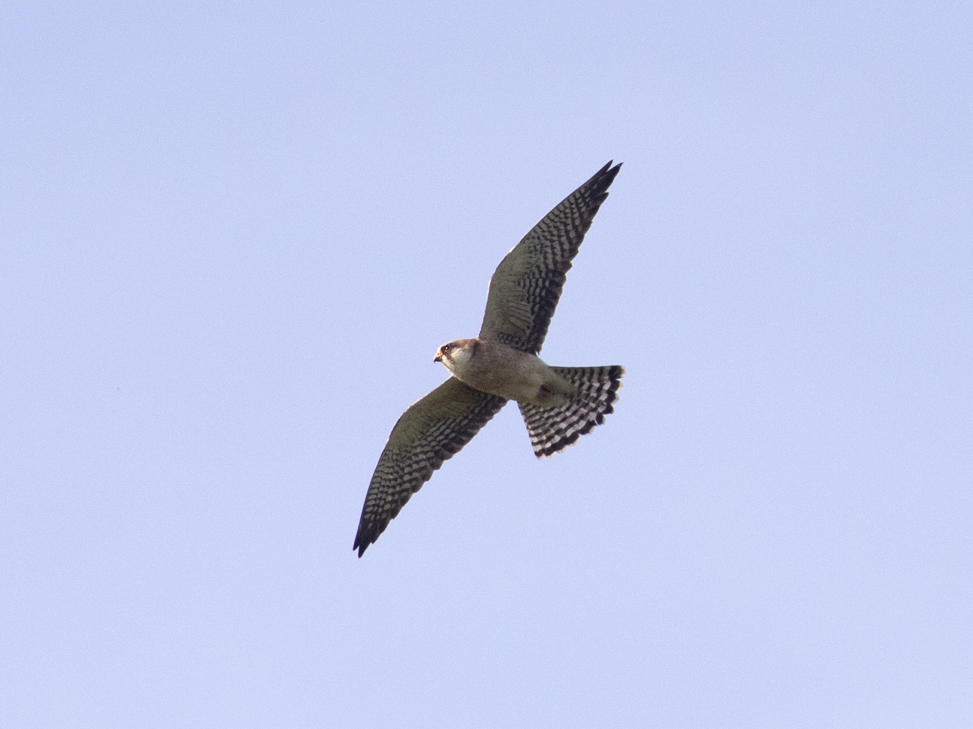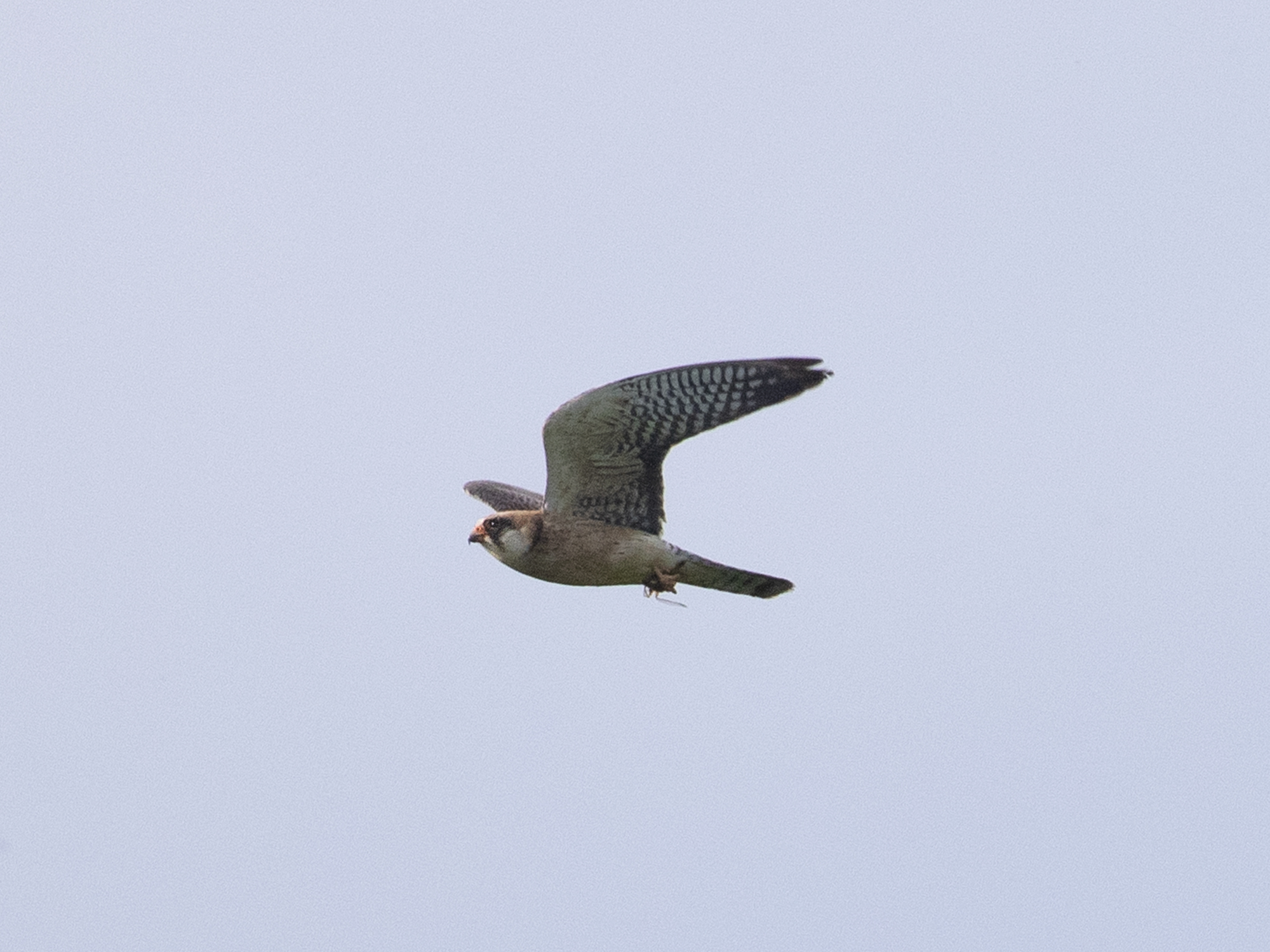 As many encounters with migrant birds here go this was both exciting and brief if a little distant and I wondered if checking Worth Marshes would be wise considering the track record the place has with these kind of aerial hunters and made my way there. Whilst driving I saw Bird guides notification of a Red-Foot at Worth come up on my locked screen, Neil Davies had found a female over the great wood from his house. When I arrived I had great views of the WhitetailedEagle that had been seen earlier and fantastic numbers of birds in general, no birders to be seen. Before long I had picked up this female Redfoot and had some lovely views.