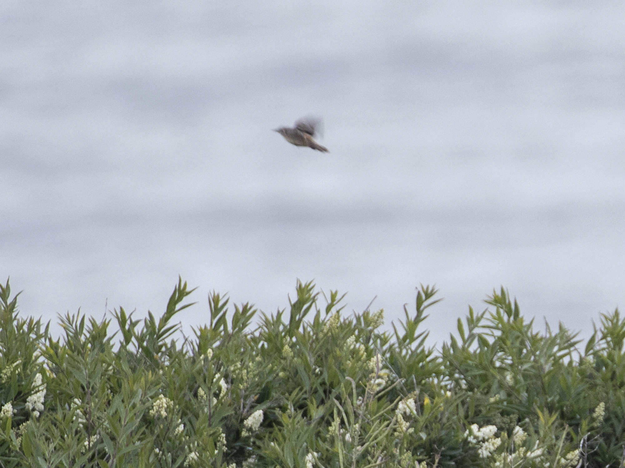 Little/nothing to report from my walk towards South Foreland beyond a dozen or so Swifts until I reached the end of the cliff edge path before the light house. A distinctly small bird flitted from a tiny privet bush on the very edge of the cliff, my first thought was “what ever that is it’s just arrived”, got my bins on it as it flew and even with a brief flight view the strong Jizz of Fan-tailed warbler was apparent: the rounded tail, long bill with a little droop, short wings and weak little bursts of undulating zigzag flight plus I caught a glimpse of the rusty rump.